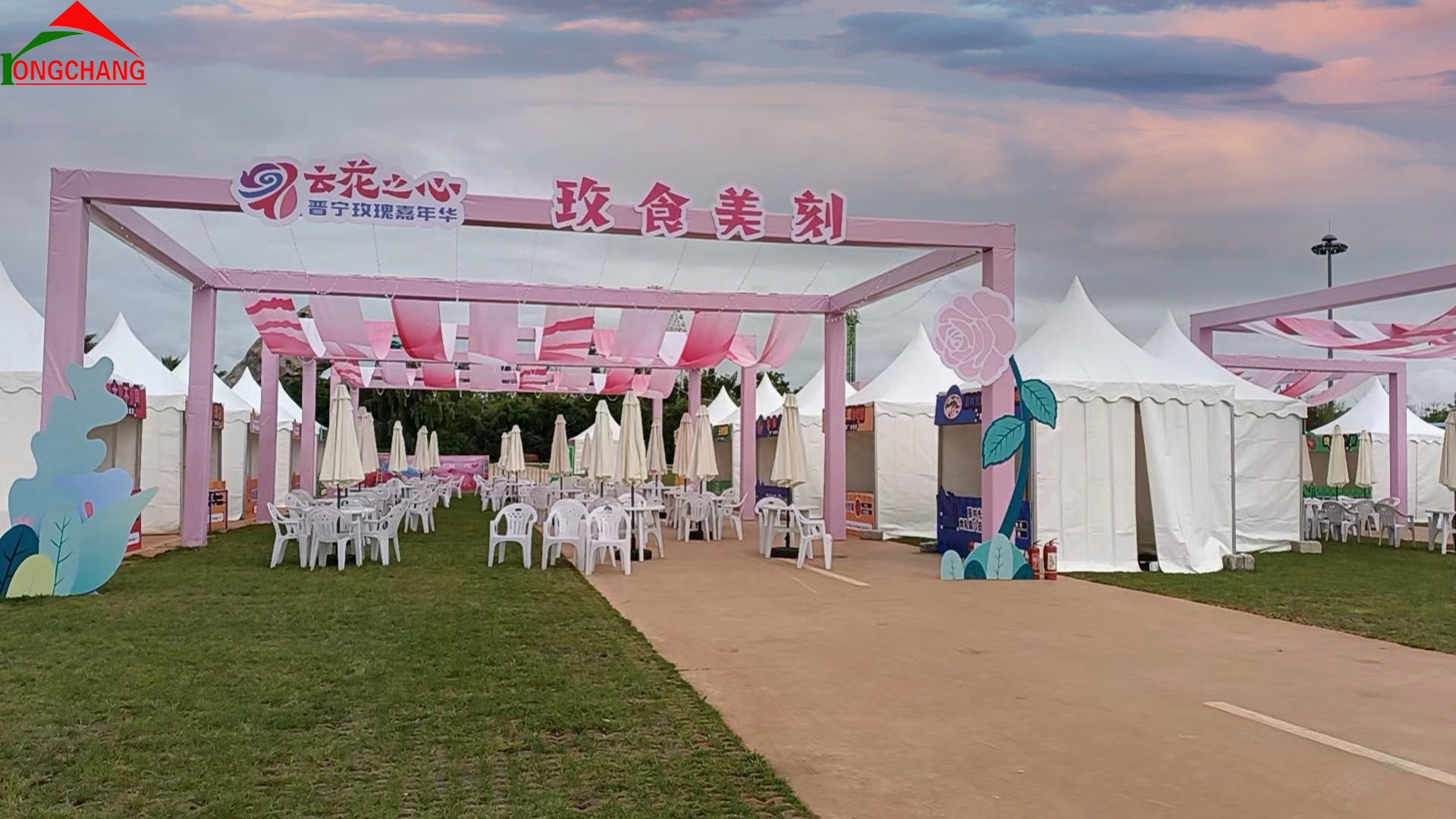 尖顶篷房有多种尺寸选择,包括3x3m,4x4m,5x5m,6x6m。篷房边高为2.5m。主结构为高强度铝合金(3-6米主截面为82x47x2.5mm),篷布为阻燃的双面涂层PVC合成纤维布,符合欧洲DIN4102B1、M2国际标准,克重850g/sqm有遮光和半透光以及全透明的选择。 尖顶篷房可以根据您的需求配置不同的配套设施,使篷房的功能和用途得到最大化的扩展,常见的配置包括布幔、窗户、配套地板,地毯、玻璃墙、玻璃门、透明顶等。 本品外观美观,设计先进,安全方面达到最严格的欧洲标准,抗风速达到70km/h(相当于7级风),搭拆方便。产品被广泛运用于各种活动,户外婚礼,企业推广,体育赛事,临时仓库和急救中心等。 可提供灵活的篷房租赁业务.
